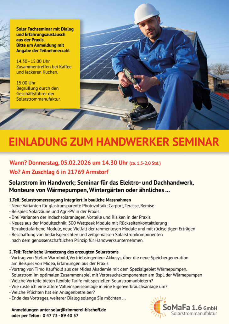 Seit über 15 Jahren installiert die Michael Bischoff GmbH Solarstromanlagen für Privat und Gewerbe im Landkreis Cuxhaven, Stade und Rotenburg an der Wümme.